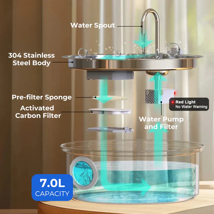 If in doubt, we always recommend sizing up. A larger fountain means less frequent refills and ensures your pet always has access to clean, flowing water—even during hot days or long work hours